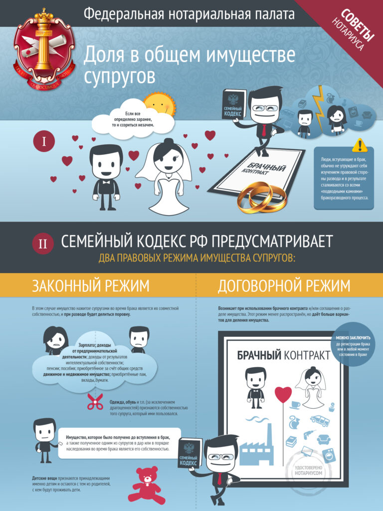 На самом деле при  отделении совместной собственности супругов от их личной собственности может  возникнуть гораздо больше сложностей,  на которых спотыкаются и сами бывшие супруги, и адвокаты, и судьи.  Поэтому и при составлении брачного договора и при разделе имущества в суде советуем вам пользоваться услугами нотариусов, опыт которых в составлении брачных договоров в России самый большой.